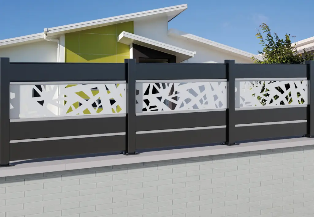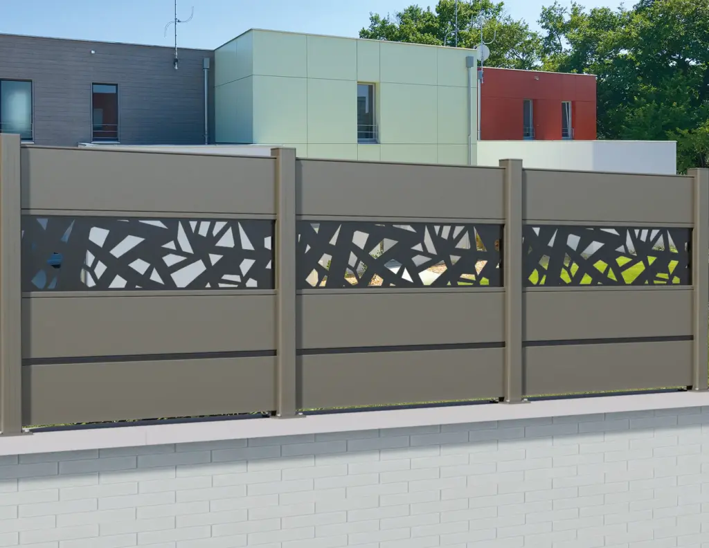 Clôture aluminium avec remplissage tôle découpe laser, la clôture CL CT 27 est un modèle épuré au design original et élégant. Il apportera une touche de modernité à votre jardin. Demander un devis Configurer
